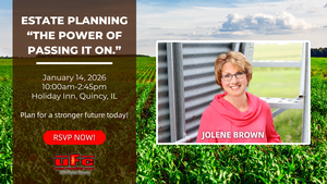 Ursa Farmers Cooperative is thrilled for you to join us for “Estate Planning: The Power of Passing It On” with nationally recognized speaker Jolene Brown, CSP, CPAE, on Wednesday, January 14, 2026, at the Holiday Inn in Quincy, Illinois.